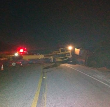 Um guindaste tombou causando a interdição da rodovia no momento em que o equipamento era utilizado para a remoção de uma carreta bi-trem que havia sofrido acidente naquele local. Em determinado momento da operação, o guindaste atingiu uma valeta às margens da rodovia causando o tombamento.