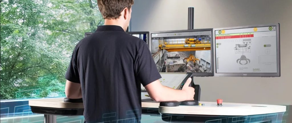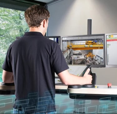 A tecnologia SIMOCRANE RCOS (Remote Control Operation System) permite operar guindastes industriais, como pontes rolantes, à distância, minimizando riscos e otimizando tempo e recursos.