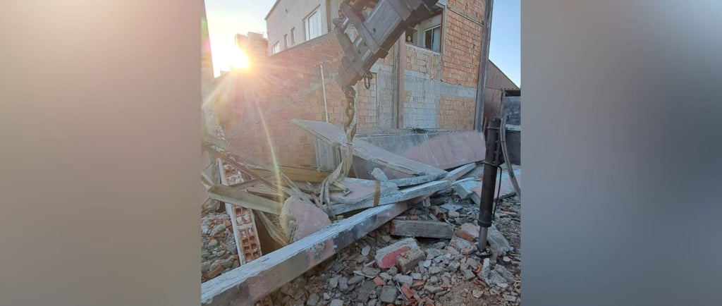 Placa de concreto cai de caminhão guincho e atinge trabalhadores em obra de Itapema